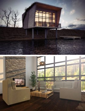 Floating House by Dymitr Malcew. This gorgeous floating house is designed with the concept of freedom and nature in mind. The open glass and use of natural light allows one to seamlessly connect with their surroundings.